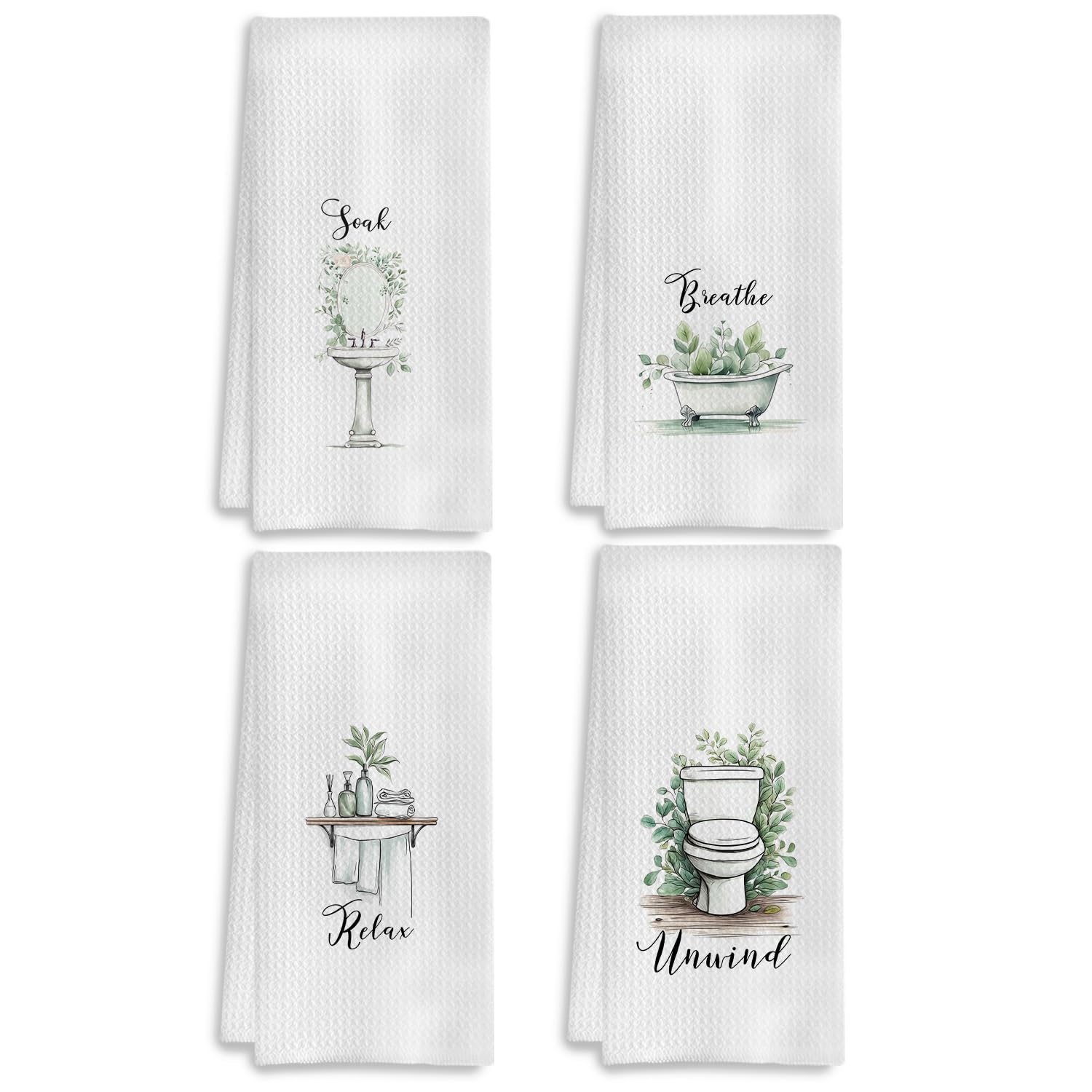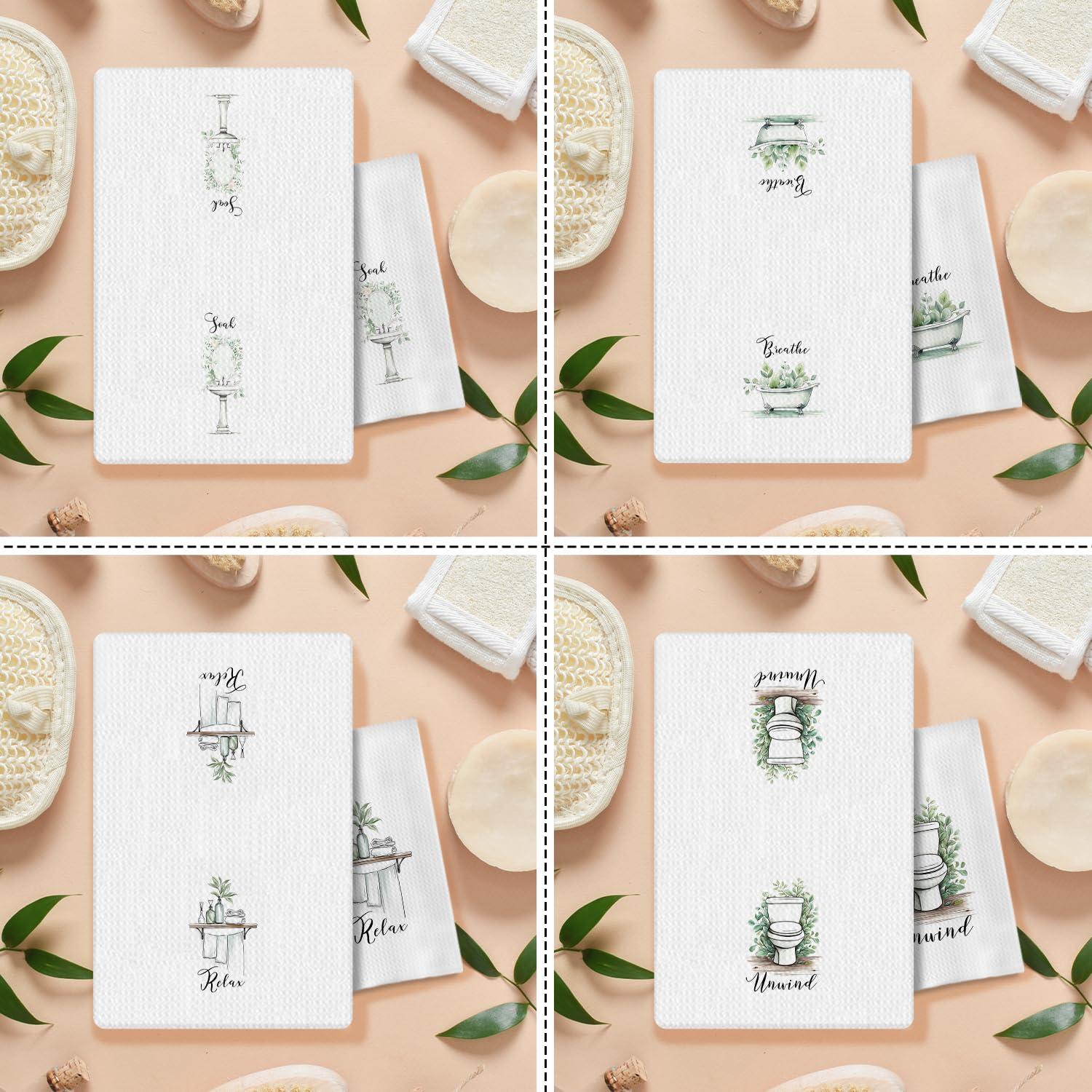 COWEB Boho Botanical Bathroom Hand Towels Set of 4, Relax Breathe Soak Unwind Decorative Hand Towels for Gym Yoga Spa Bathroom Decor, 16x24 Inches