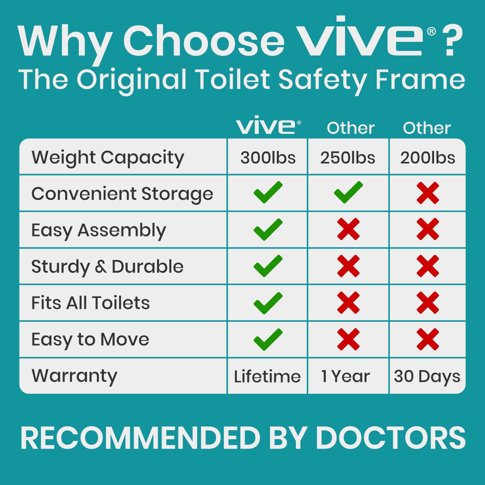 Vive Toilet Safety Rail with Arms - Toilet Support Frame w/Handles for Seniors - Grab Bar Handrail for Elderly, Handicap & Disabled - Bathroom Riser Assistance Aid - Stand Alone Lifter to Help Stand